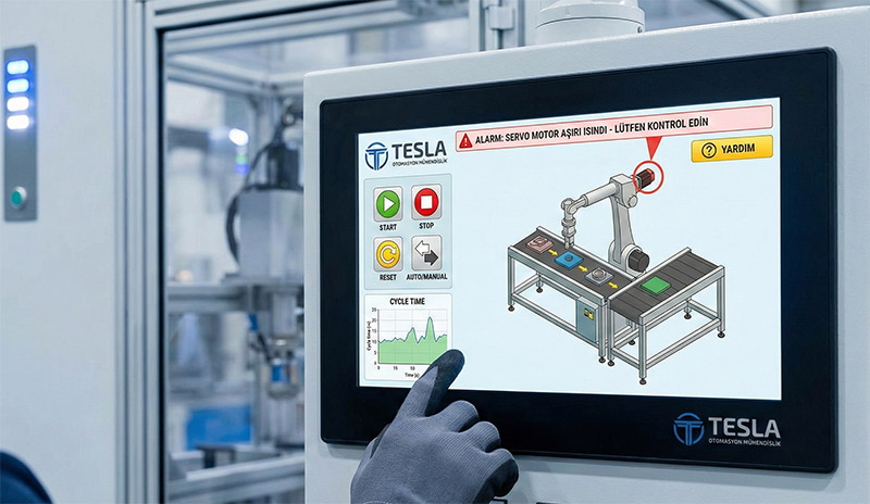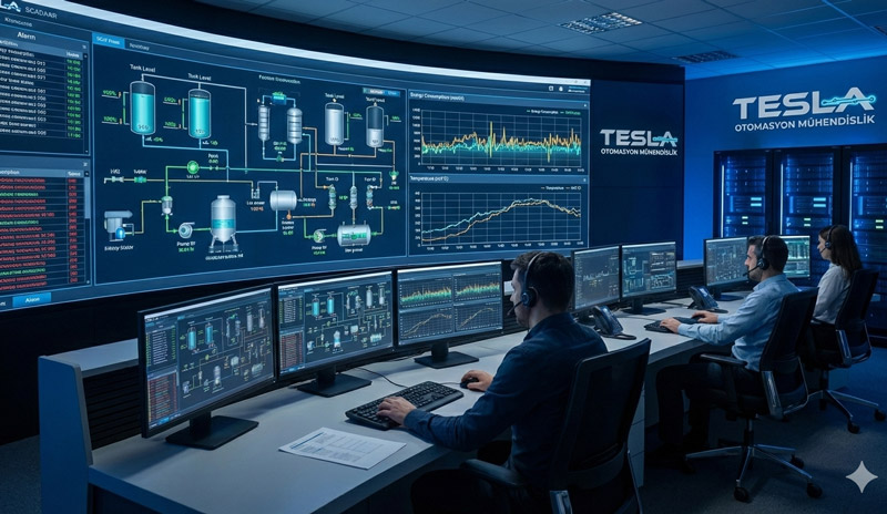 "Tesla Otomasyon Mühendislik olarak, endüstriyel tesislerin dijital dönüşüm yolculuğunda stratejik çözüm ortağıyız. Mühendislik birikimimizi; PLC ve Motion Control yazılımları, SCADA sistemleri ve kullanıcı dostu HMI ekran tasarımlarıyla birleştirerek; üretim süreçlerinde verimliliği, hassasiyeti ve sürdürülebilirliği maksimize ediyoruz. Sadece sistem kurmuyor, yüksek performanslı kontrol algoritmalarımızla geleceğin akıllı ve hareketli üretim hatlarını bugünden inşa ediyoruz."